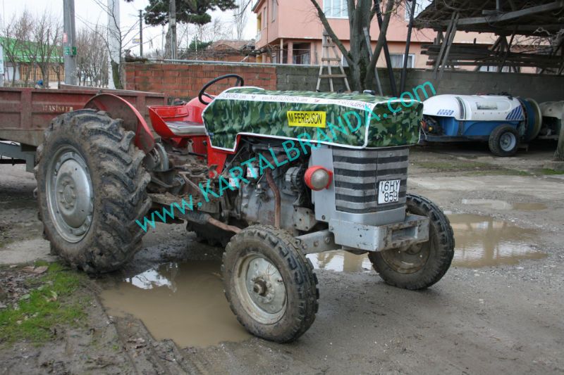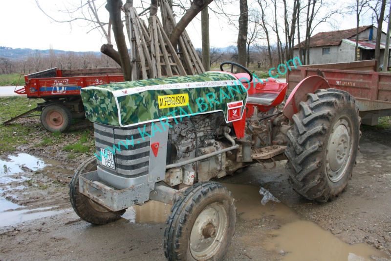 Massey Ferguson 165 Model Traktör için su geçirmez kamuflaj desenli brandadan üretilmiş traktör kılıfı.